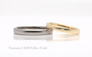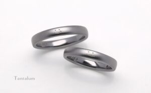 チタンは空気に触れて酸化することで強固な酸化被膜を作ります。この酸化被膜により汗等に触れても金属イオンが溶け出すことなく金属アレルギーに安心な素材と言えます。また、比重が約4.5と非常に軽い素材で、強度も高い為、毎日身に付ける結婚指輪としてお勧めの素材です。プラチナと比較すると少し暖色よりの色味となります。